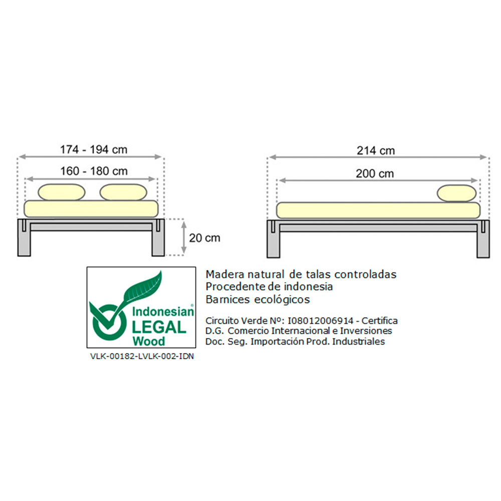 Disponible en acabado natural sin barniz, esta base conserva la textura y el color auténtico de la madera cruda. Su estructura robusta garantiza durabilidad y estabilidad, aportando un toque elegante y natural a cualquier dormitorio.