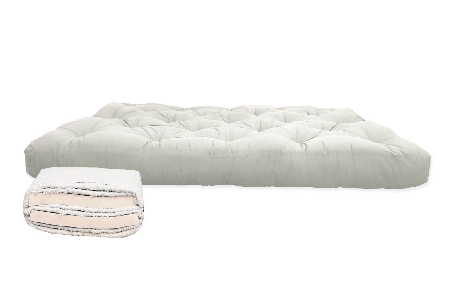 Disfruta del descanso minimalista con nuestro colchón tradicional japonés con dos capas de látex, inspirado en la tradición nipona. Fabricado artesanalmente con algodón ecológico y látex orgánico, su composición 100% natural lo convierte en un futón ecológico, sostenible y sin materiales sintéticos.