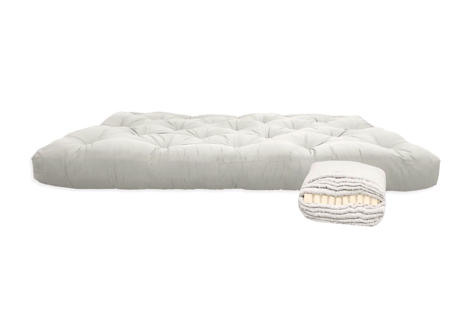 Disfruta del descanso minimalista con nuestro colchón tradicional japonés con una capa de látex, inspirado en la tradición nipona. Fabricado artesanalmente con algodón ecológico y látex orgánico, su composición 100% natural lo convierte en un futón ecológico, sostenible y sin materiales sintéticos.