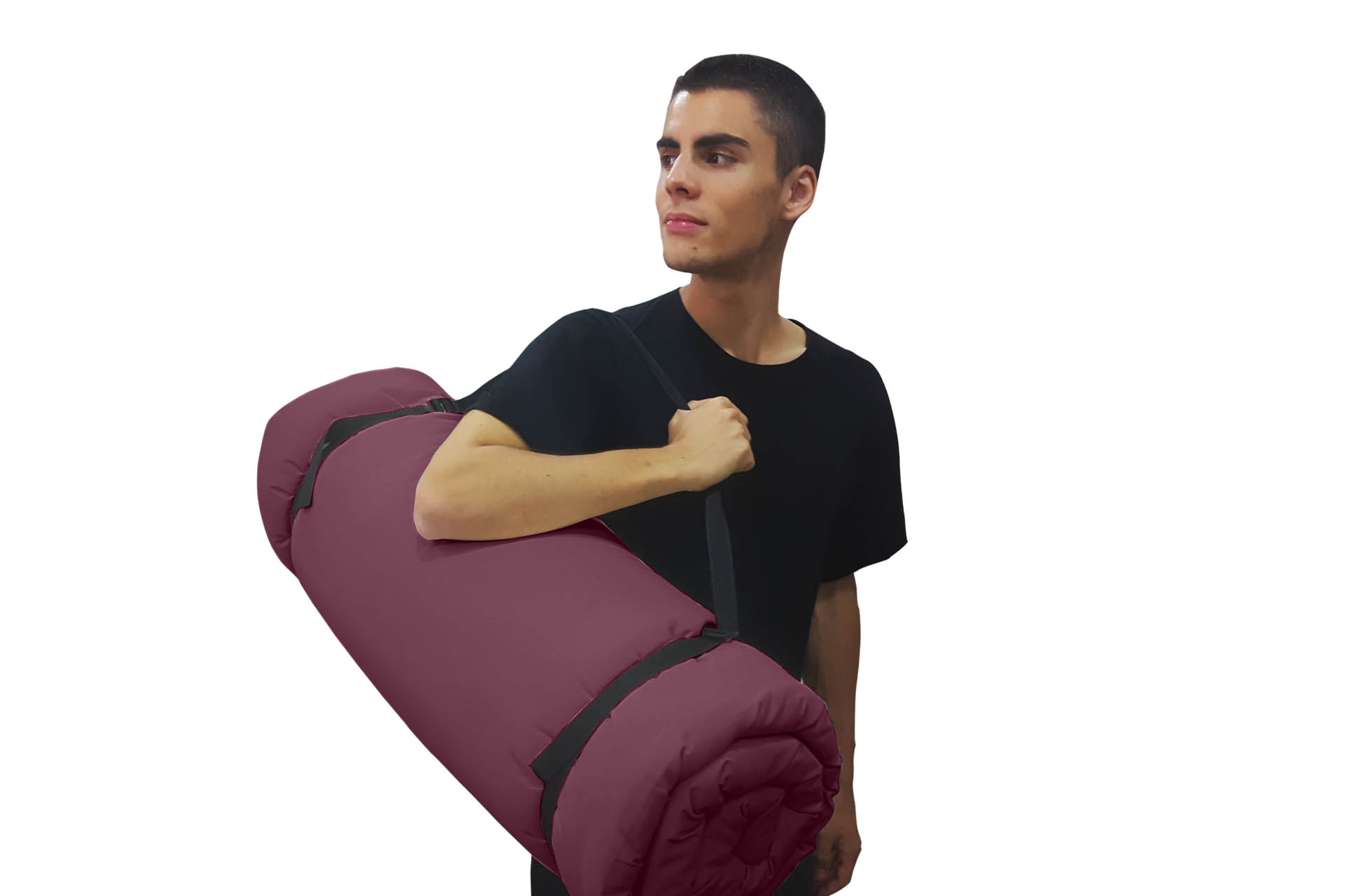 Con un peso de solo 6 kg, este futón enrollable y plegable está pensado para acompañarte allí donde lo necesites. Incluye una funda lavable de color y una cinta ajustable para facilitar el transporte.