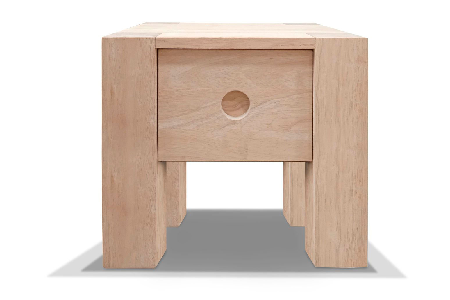 Fabricada en madera maciza de hevea, resistente y duradera, con acabado natural sin barnizar para mantener su esencia orgánica.