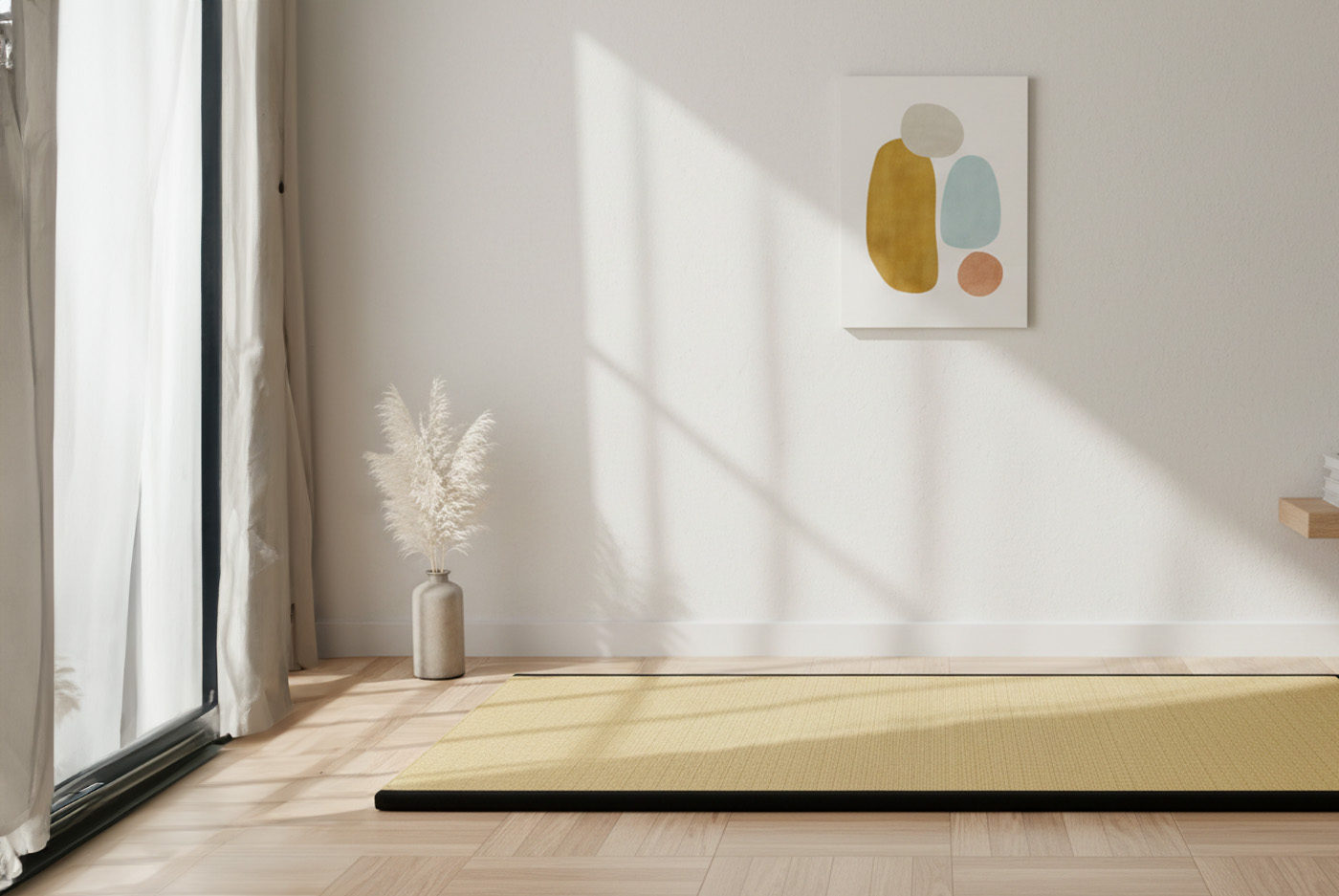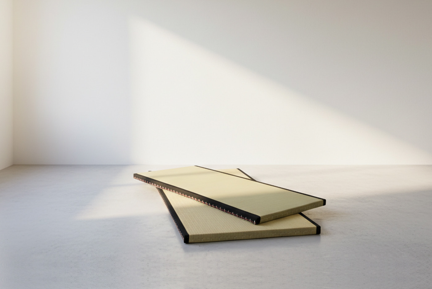 Cada tatami se elabora de forma artesanal siguiendo la tradición nipona, con núcleo de arroz natural y tejido superior de igusa trenzado, que permite una excelente transpirabilidad y regula la humedad de forma natural. Su borde perimetral reforzado asegura estabilidad y protección frente al desgaste.